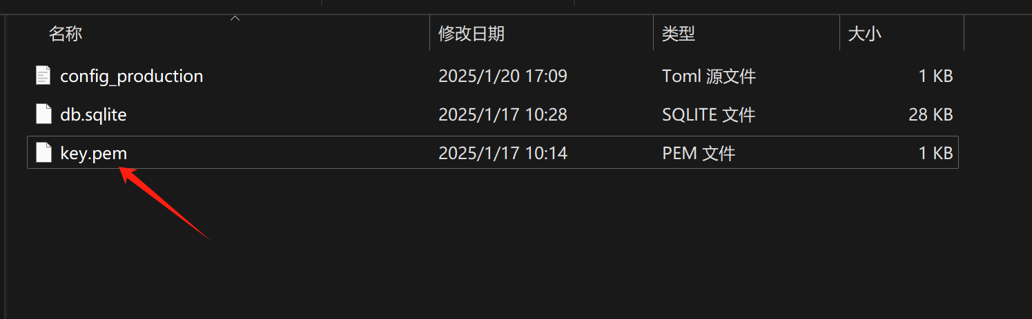 在新版本中,私钥默认保存在本地 key.pem 文件下,可以在以下位置找到: