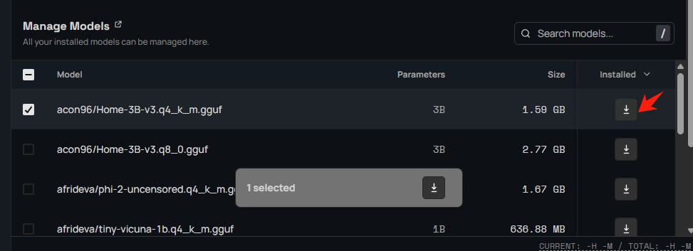 安装模型后,您现在可以在软件的“管理模型”部分管理和检查模型详细信息。