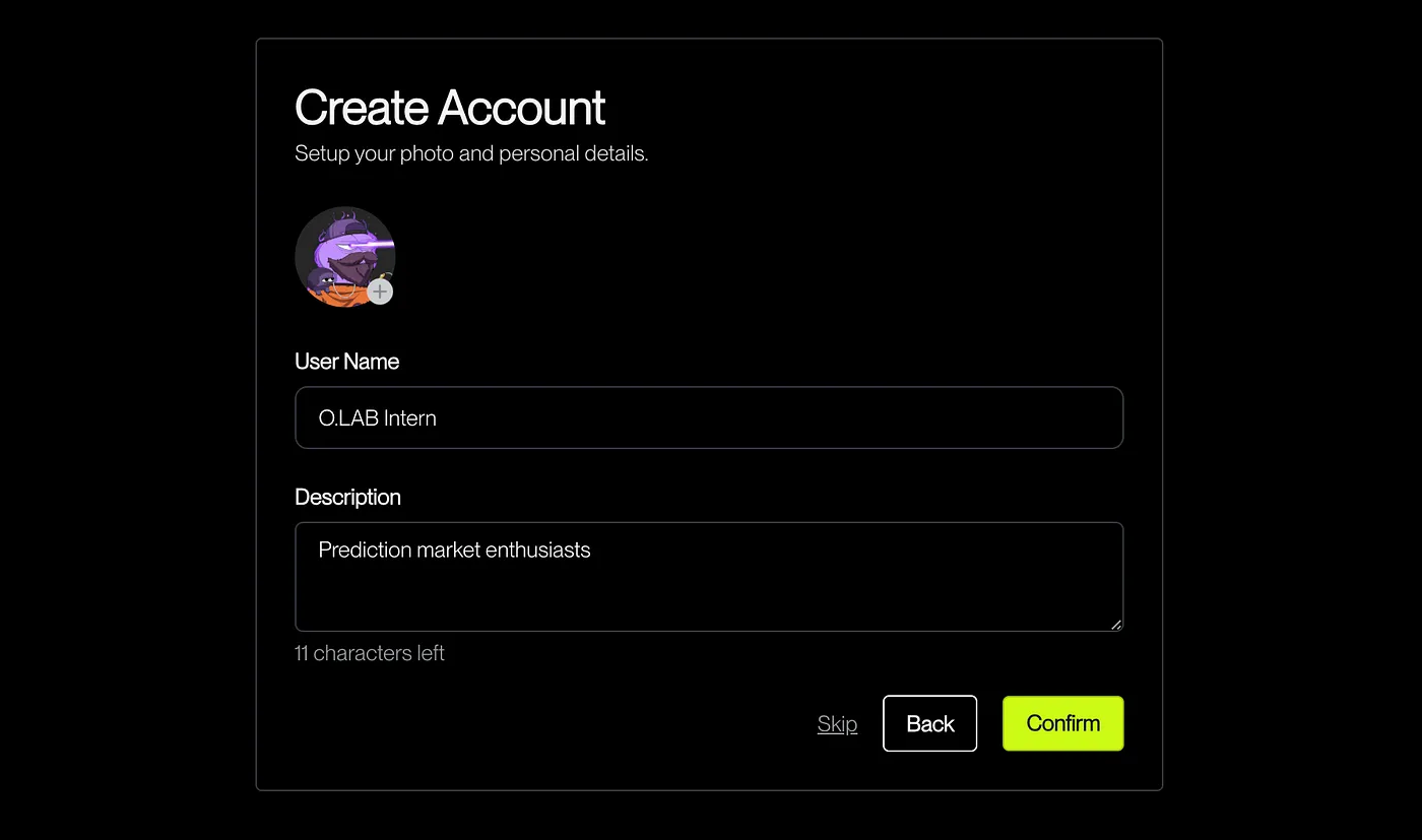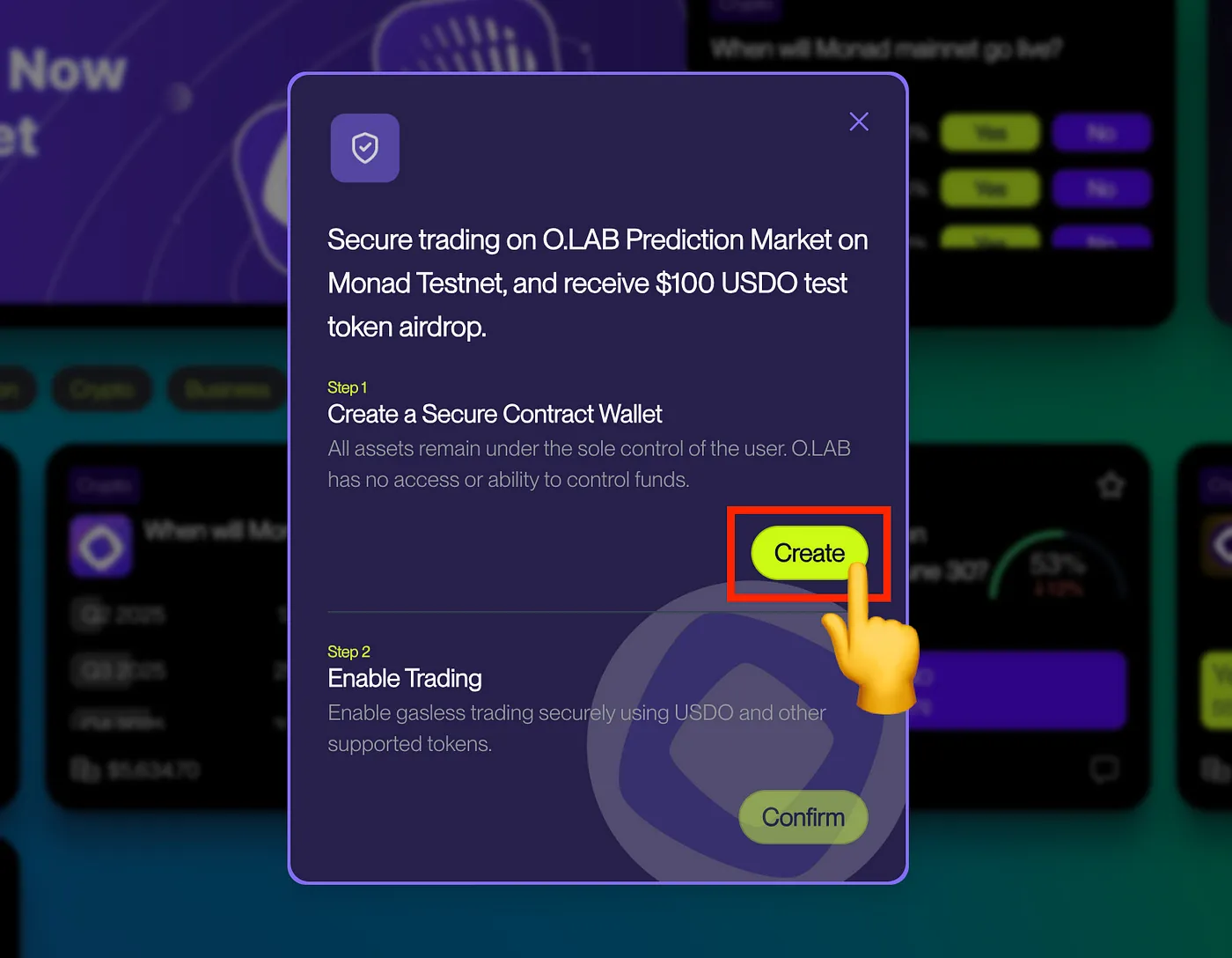 完成验证码后,再次点击钱包扩展中的“确认”进行签名。您的新 O.LAB 帐户将创建。