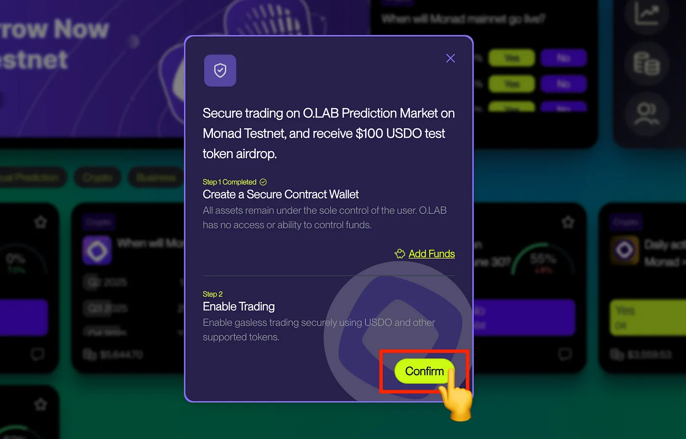 点击“确认”即可自动收到您的 100 美元 USDO 试用资金。该金额将在几秒钟内显示在您的账户余额中。
