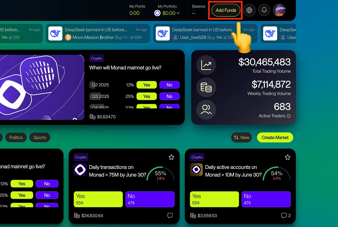 如果您使用 $aprMON 进行交易,请单击“添加资金”将 $aprMON 转入您的账户。