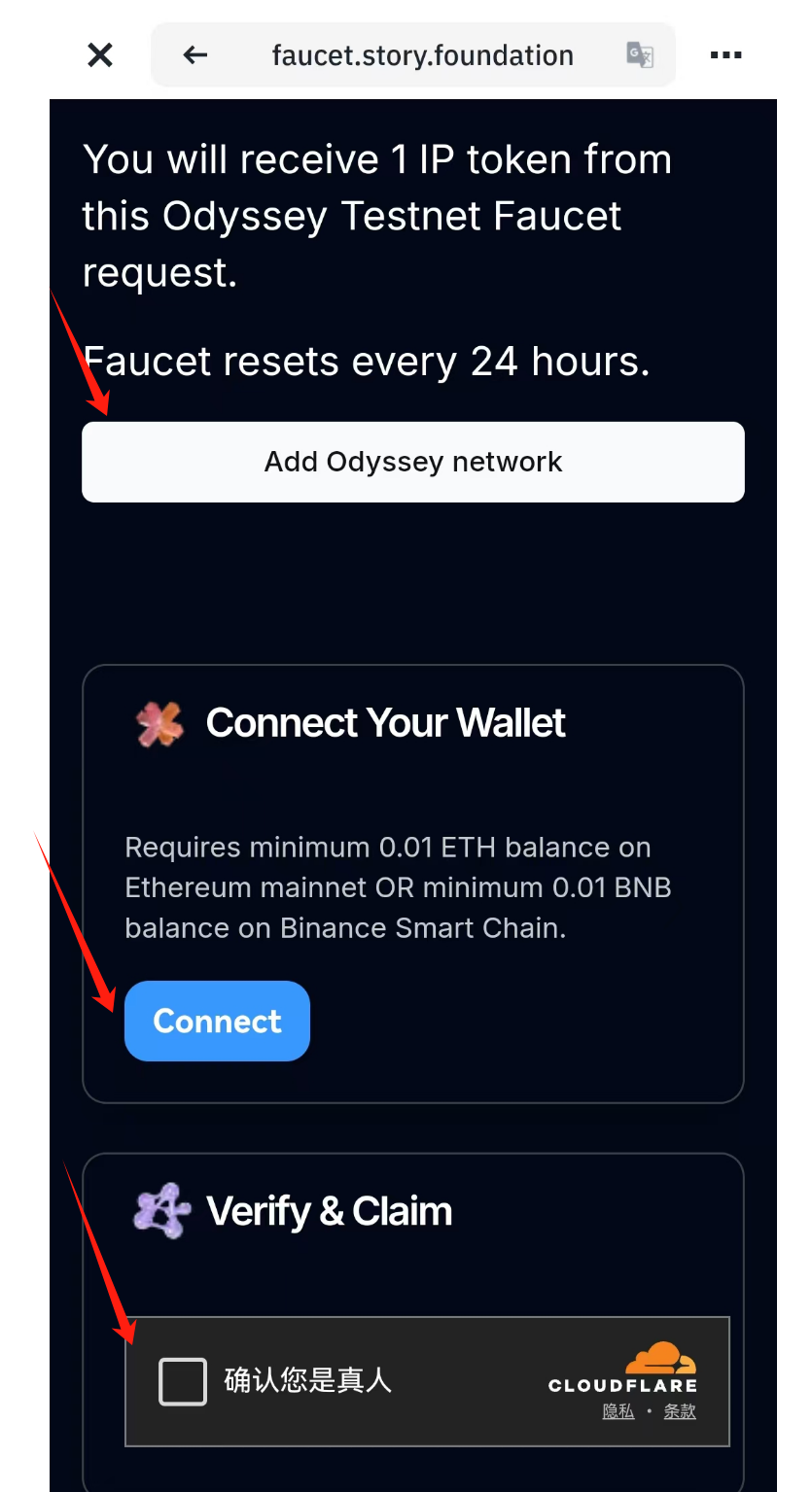 连接钱包 → 添加测试网路 → 人机校验: