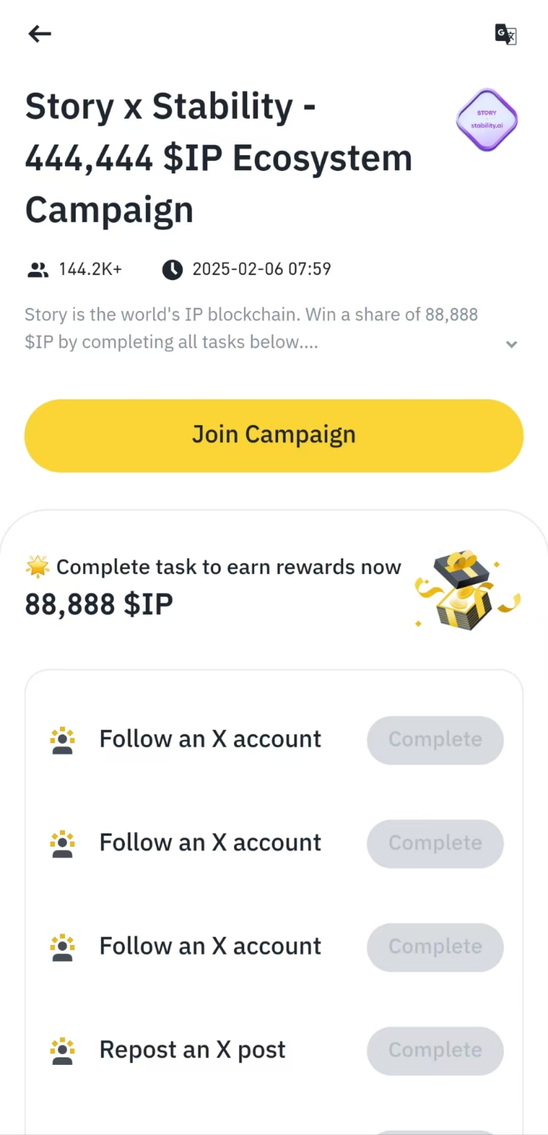 完成任务2后,任务1相对简单很多, 一样进入活动页面,点击”Join Campaign“: