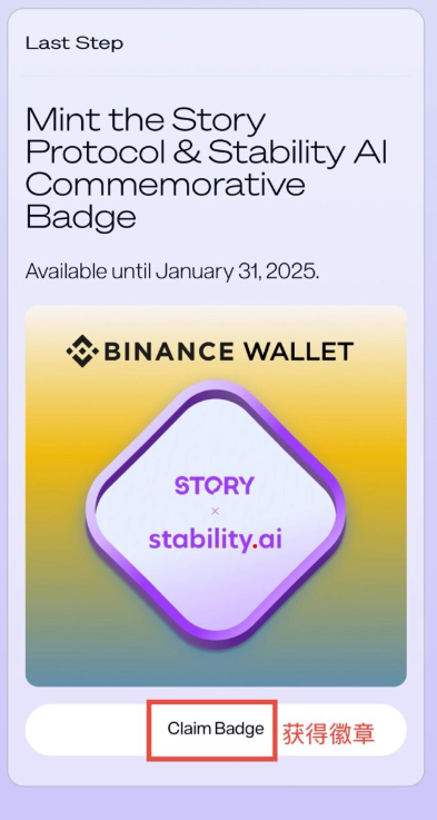 最后一步”Claim Badge“获得徽章: