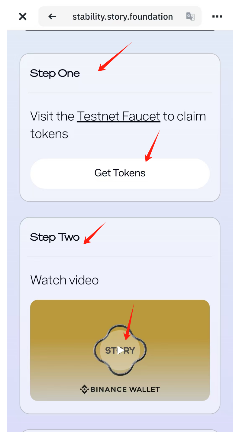 接下来 ”Step One“领取测试币, 然后 ”Step Two“看看视频: